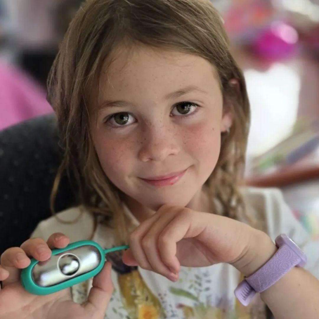 CalmCarry is a handheld device that uses gentle micro-pulses to target a pressure point in the palm used for over 1,000 years to support calm and relaxation. Simply hold it in your hand and let the soft pulses do the work. It's designed to help kids and adults unwind naturally.