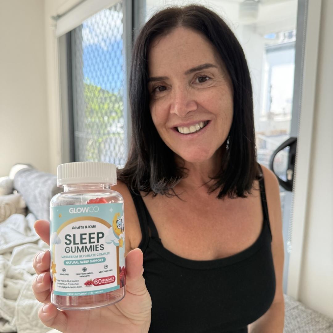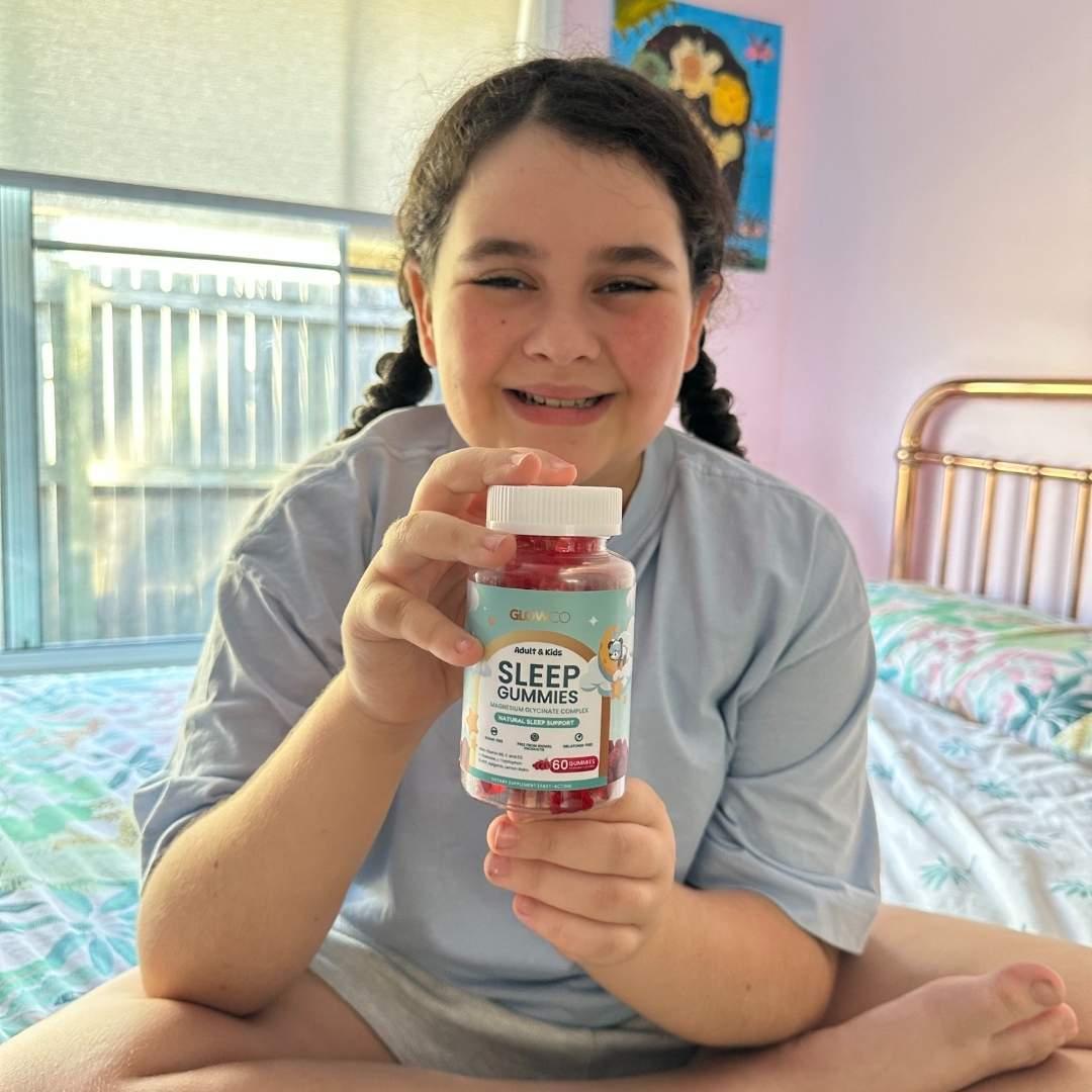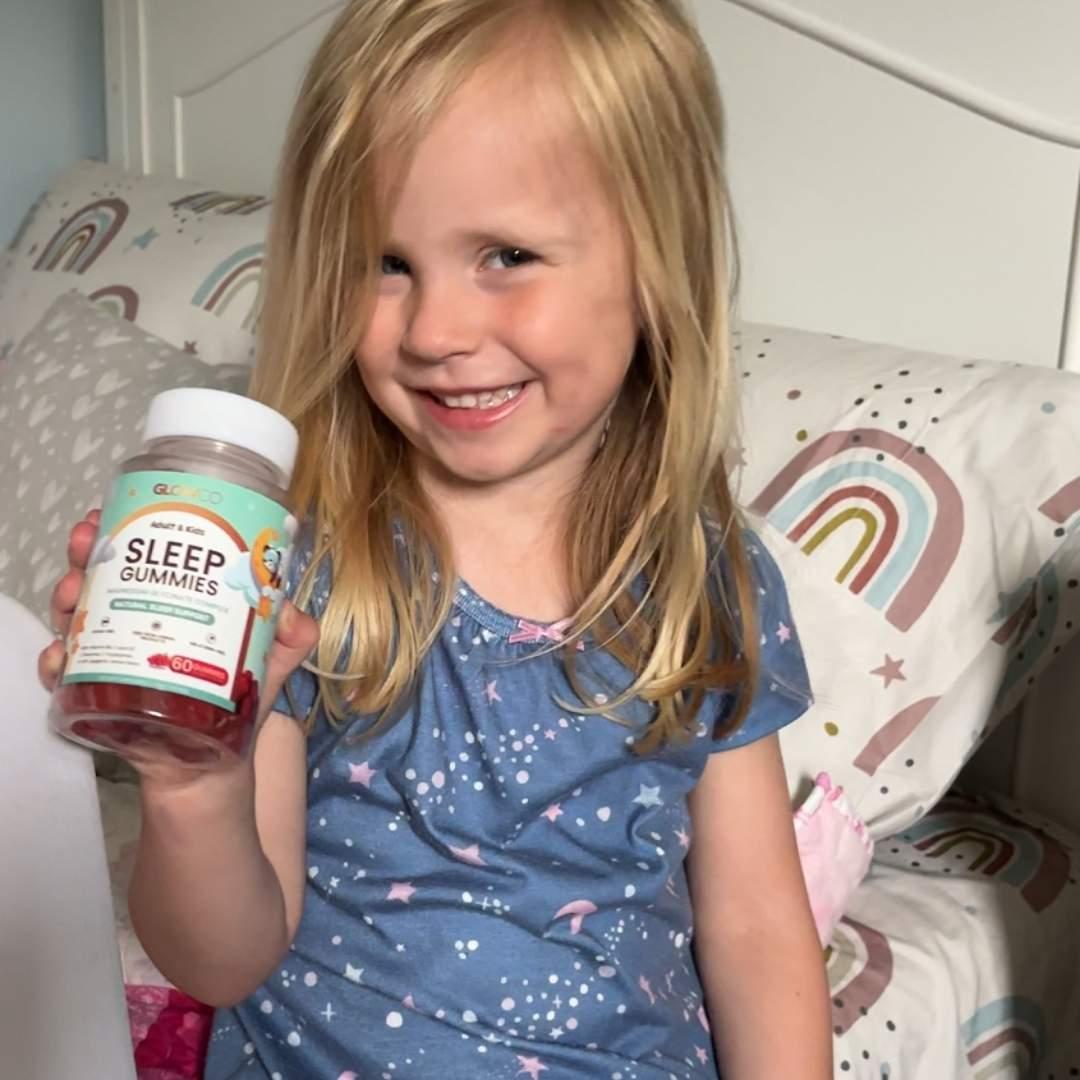 Glowco Kids Sleep Gummies are made with Magnesium Glycinate, L-Theanine, Lemon Balm, Chamomile, and Passionflower a blend known for promoting relaxation and healthy sleep patterns.